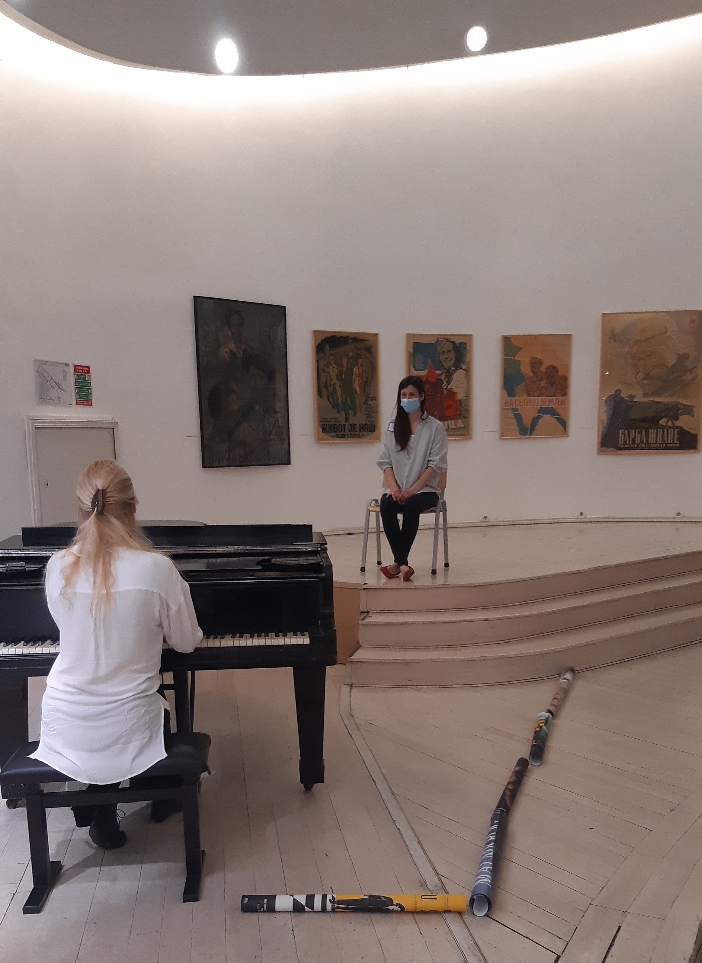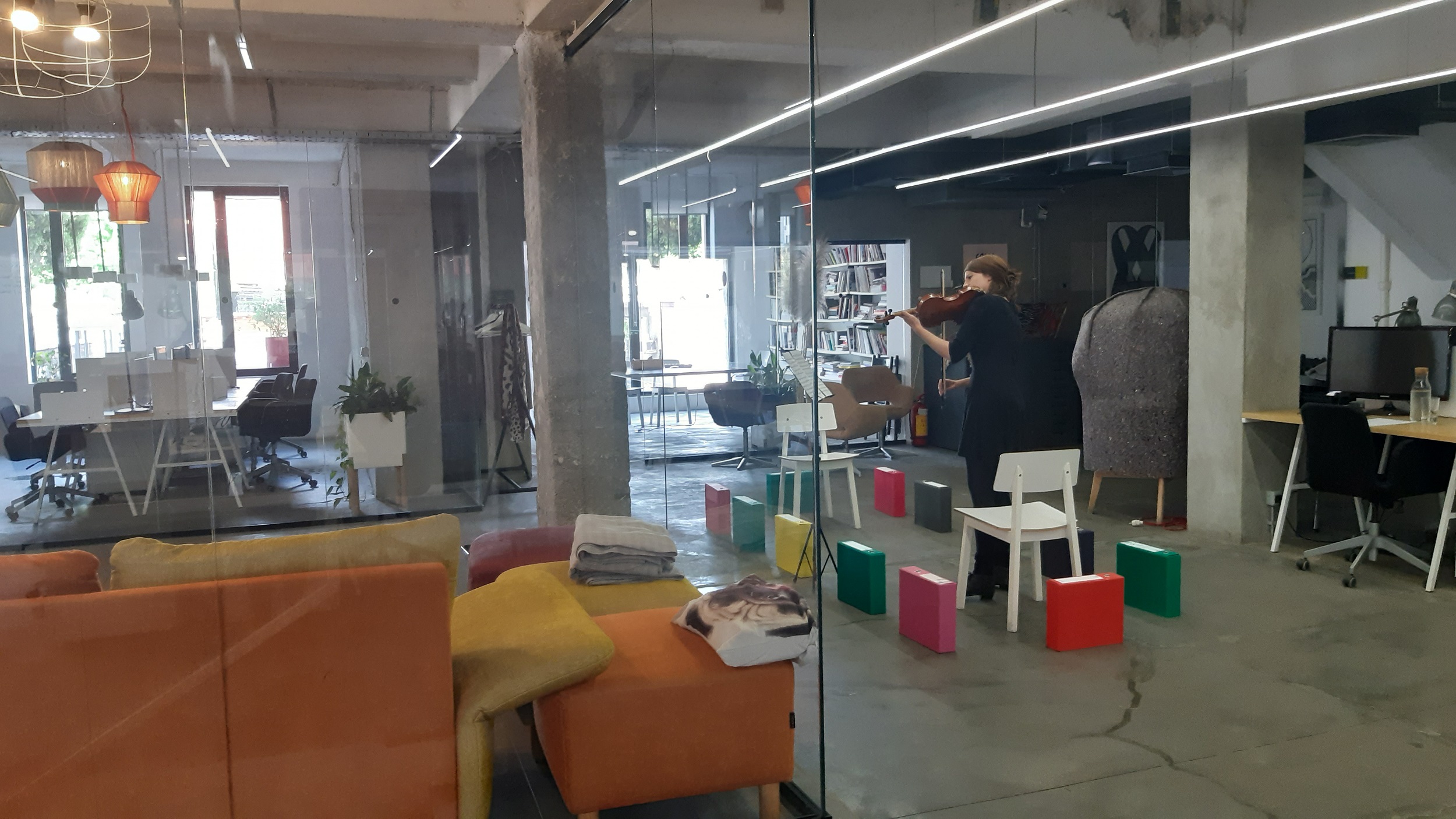 There were 4 musicians, 12 guests and 4 venues. Besides me, Milica from Orfeus, there were three more hostesses: Ljubica from KCB and Bianka from Nova Iskra, who engaged at the venues and Marijana who assisted with bringing the guests from the ”place of meeting” to the concert space.